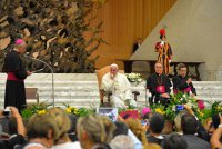 W piątek z uczestnikami konferencji spotkał się papież Franciszek. W słowie skierowanym do obecnych w auli Pawła VI powiedział min.: "Świat jest pełen ludzi znużonych i utrudzonych, którzy czekają na Kościół, czekają nas. Naszym obowiązkiem jest do nich dotrzeć i dzielić się z nimi doświadczeniem wiary". Przesłanie to streścił w czterech głównych myślach bp Grzegorz Ryś. Jesteśmy wezwani do wyjścia by szukać ludzi poranionych i samotnych – nie mających Pasterza. Jesteśmy wezwani do ciągłego wychodzenia by szukać współpracowników – jak gospodarz winnicy, który czynił to nie raz ale pięć razy. Jesteśmy wezwani do modlitwy, bo Kościół jest Pana. Jesteśmy wezwani do cierpliwości – na wzór Maryi – umiejącej czekać najpierw 9 miesięcy a potem 30 lat na wypełnienie się Słowa.