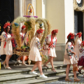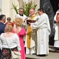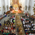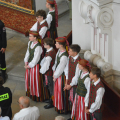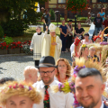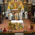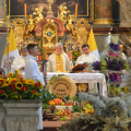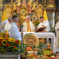 Uroczystość rozpoczęła się na placu przed bazyliką, gdzie bp Andrzej poświęcił 12 przygotowanych na to wydarzenie wieńców. Następnie w bazylice odprawił dziękczynną Eucharystię. W uroczystości wzięli udział przedstawiciele gminy z wójtem Rafałem Plezią na czele, samorządowcy z okolicznych miejscowości, rolnicy wraz z rodzinami oraz rzesza wiernych. Były także poczty sztandarowe OSP, harcerze i młodzież z drużyn pożarniczych. Oprawę liturgiczną uświetnił polski Zespół Pieśni i Tańca „Wilenka”, który został zaproszony na to święto z dalekiego Wilna.