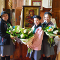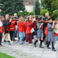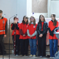 Po wspólnej modlitwie był czas na posiłek oraz integrację "Dzielimy się radością". Podczas tego ostatniego punktu programu, uczestnicy Warsztatów Terapii Zajęciowej z Lwówka Śląskiego przedstawili sztukę teatralną, a młodzież ze szkoły muzycznej z Legnicy wystąpiła z koncertem pieśni i piosenek religijnych.