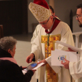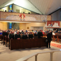 W sobotę (4 października) w kościele pw. Matki Bożej Królowej Polski została odprawiona uroczysta Msza św. dziękczynna. Eucharystii przewodniczył biskup legnicki Andrzej Siemieniewski, który poświęcił tablicę upamiętniającą pierwszego proboszcza, a zarazem budowniczego kościoła śp. ks. prałata Aleksandra Stankiewicza oraz nowoczesne organy zakupione do kościoła. Parafia Matki Bożej Królowej Polski na osiedlu Kopernika w Legnicy została wydzielona z części parafii Świętej Trójcy, dekretem kard. Henryka Gulbinowicza z dnia 1 lipca 1985 r. Rozpoczęto starania o uzyskanie pozwolenia na budowę pierwszej świątyni po II wojnie światowej. Kościół miał służyć dla ok. 30 tys. parafian, stąd decyzja o budowie górnej i dolnej świątyni, zwłaszcza, że w tych czasach rzadko wydawano pozwolenia na budowę obiektów sakralnych. W międzyczasie zmieniła się sytuacja społeczno-polityczna i udało się uzyskać pozwolenia na budowę kolejnych kościołów na osiedlu Kopernika i Piekarach. Dlatego też pierwszy biskup legnicki Tadeusz Rybak, podjął decyzję, aby w tzw. dolnym kościele powstało Centrum Spotkań im. Jana Pawła II. Świątynia została konsekrowana 20 września 1997 r. Obecnie parafia liczy 8 tysięcy mieszkańców. W ciągu 40 lat w tej parafii zrodziło się 11 powołań kapłańskich. W sobotniej uroczystości wzięli udział m.in. księża pochodzący i posługujący na przestrzeni 40 lat w tej parafii, przedstawiciele ruchów i stowarzyszeń katolickich, klerycy Wyższego Seminarium Duchownego Diecezji Legnickiej oraz parafianie. Na zakończenie uroczystości biskup legnicki wręczył kilkunastu osobom podziękowania za wieloletnie zaangażowanie na rzecz parafii.