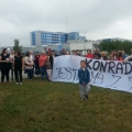 Były transparenty, megafon, ale i głośne "Sto lat". Nietypowa pikieta miała miejsce przed legnickim szpitalem.Częstowano tortem i bezalkoholowym szampanem, bo 20-letni Konrad z Legnicy, który leży na oddziale hematologii, obchodzi dziś swoje urodziny. Przed budynkiem zebrało się ok. 200 osób, by wesprzeć młodego człowieka, ale i wyrazić swoje niezadowolenie z faktu, że NFZ odmówił refundacji leku, który mógłby Konradowi uratować życie.