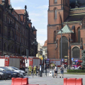 Wyglądało to niezwykle groźnie, ale na szczęście nikomu nic się nie stało. Na remontowanej wieży legnickiej katedry pojawi się dziś ogień, ale pracownicy budowlani zareagowali na czas. Teraz ognia już nie ma, ale strażacy sprawdzają, czy nie ma innych zarzewi. Mówi Michał Lipowski ze stanowiska kierowania Państwowej Straży Pożarnej w Legnicy