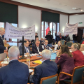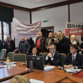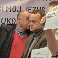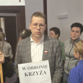 Sesja rady miejskiej Legnicy, na którą przyszło kilkadziesiąt osób w obronie krzyża, została już kilkukrotnie przerwana. Kiedy się okazało, że apel radnego Adama Wierzbickiego w obronie krzyża nie wszedł do porządku obrad, radny postawił na swoim biurku półmetrowy krzyż- i jak sam mówi- będzie go przynosił na każdą sesję.