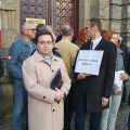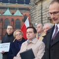 Bój o przywrócenie krzyża na salę obrad rady miejskiej Legnicy przybiera na sile. Radnych PiS w Legnicy w tej walce wspiera Instytut Ordo Iuris. Jego przedstawiciele zapowiedzieli podczas konferencji prasowej zwołanej przed legnickim ratuszem wsparcie prawne. Przygotowali też petycję do prezydenta Legnicy o przywrócenie krzyża. Petycję w internecie może podpisać każdy (www.bronmykrzyzawlegnicy.pl).