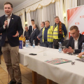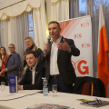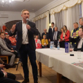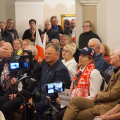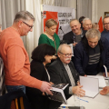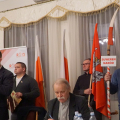 W lipcu, ubiegłego roku, "jak ręką odjął " zniknęli z ulic Legnicy ( i Polski) emigranci. A przecież jeszcze rok temu, każdy kto bywał w okolicach Al. Rzeczpospolitej, Bielańskiej, widział te charakterystyczne grupy kobiet i mężczyzn "zwiedzające" Legnicę. Zniknęli bo pojawili się na granicy ludzie z całej Polski, ludzie Ruchu Obrony Granic Roberta Bąkiewicza. Blokady, presja, protesty w całej Polsce, wymusiły na rządzie zamkniecie zachodniej granicy. Emigranci zniknęli. Donald Tusk ustąpił. Pewnie dlatego spotkanie w sali Magnolie z działaczami tego ruchu było niezwykle udane. Robert Bąkiewicz, Oskar Kida, Adam Borowski zaczęli pobyt w Legnicy od konferencji prasowej na legnickim Rynku. Zbierali też podpisy pod projektem ustawy antyemigracyjnej. Szczególnie chętnie podpisywali ludzie młodzi. Ta atmosfera przeniosła się wieczorem na salę Magnolie przy ulicy Nowodworskiej. Gości przy wejściu przywitała błękitna dyskoteka świateł bijących z pięciu policyjnych radiowozów obstawiających spotkanie. Czekała też, trochę niemrawa manifestacja „antyfaszystów”. Sala przy Nowodworskiej z trudem pomieściła wszystkich chętnych. Pojawiło się dużo nowych twarzy. W odróżnieniu od samej manifestacji przed salą, nastrój i reakcja na przemówienia wewnątrz zdradzała wzbierającą falę nadziei na zmianę, na dobrą zmianę. Po spotkaniu zdumiewała niekończąca się kolejka po książki, podpisy autorów i szansę na choćby krótką rozmowę. Resztę widać na załączonych zdjęciach i słychać w załączonych nagraniach.