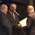 Ks. Prałat Wiesław Migdał uhonorowany podczas uroczystości z okazji 39.rocznicy Zbrodni Lubińskiej. Pamiątkową tablicę wręczył Adam Myrda, starosta lubiński.