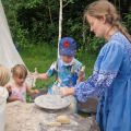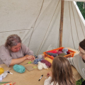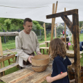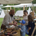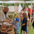 - 13:00–19:00 – Warsztaty rzemieślnicze (płatne 10 zł): kaletnictwo, tkactwo, kowalstwo, garncarstwo, tworzenie motanek, repuserstwo, szachy wikingów, zapiekane paciorki, drewniane zabawki