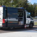 Mobilna stacja kontroli pojazdów stanęła przy ul. Zielonogórskiej w Lubinie. Sprzęt daje możliwości sprawdzenia ciężarówki w wymiarze takim, jak na stacji diagnostycznej.