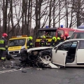 Do czołowego zderzenia dwóch samochodów doszło na krajowej trójce między Bolkowem a Mysłowem. Zderzyły się osobowe Audi A6 i dostawczy Volkswagena. Trzy osoby ranne, jedna z nich przewieziona została do szpitala w Jeleniej Górze. Droga była zablokowana przez ponad 2 godziny. Mówi Marek Leśnicki z jaworskiej straży pożarnej.