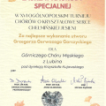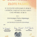 Męski Chór Górniczy prowadzony przez dyrygenta Krzysztofa Kujawskiego wziął udział w dwóch konkursach, z których przywiózł najwyższe laury. Chór wystąpił w XVI Ogólnopolskim Turnieju o Kryształowe Serce Chełmińskiej Jesieni, zdobył "Złote Pasmo" i Puchar Prezesa Polskiego Związku Chórów i Orkiestr, a także dwie nagrody specjalne: za najlepsze wykonanie utworu o tematyce sakralnej "Pater Noster" Piotra Jańczaka oraz za najlepsze wykonanie kompozycji Grzegorza Gerwazego Gorczyckiego "Sepulto Domino". Kolejny sukces to nagroda "Złote Pasmo" w II Ogólnopolskim Konkursie Chóralnym im. Piotra z Grudziądza. Mówi Andrzej Kukliński, prezes Górniczego Chóru Męskiego